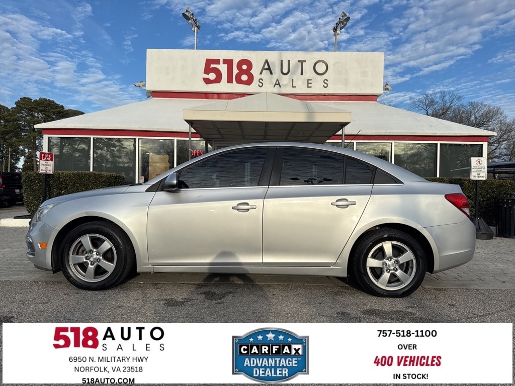 *150 POINT INSPECTION*, *3 MO 3000 MILE SERVICE CONTRACT ON MOST CARS SEE SALES FOR DETAILS*, *518AUTO.COM*, *CALL ALEX NOW 757-518-1100 FOR BEST DAILY PRICE*, *FRESH DETAIL*, *FRESH OIL CHANGE*, *MUST BRING IN AD TO GET SPECIAL INTERNET PRICE*, *NEW STATE INSPECTION*, *https://www.facebook.com/518Auto/#*, *PRINT OUT TO GET THIS PRICE*, *DEALER TRADE-IN*, *CLEAN CARFAX*, *20 SERVICE RECORDS*, *SERVICE RECORDS AVAILABLE*, Cruze Limited 1LT, 4D Sedan, ECOTEC 1.4L I4 SMPI DOHC Turbocharged VVT, 6-Speed Automatic Electronic with Overdrive, FWD, Silver Ice Metallic, Jet Black w/Premium Cloth Seat Trim.