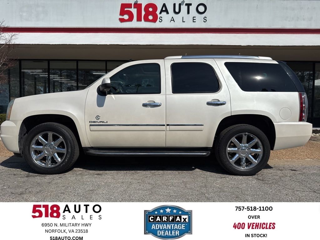 *NAVIGATION*, *SUNROOF*, *LEATHER*, *150 POINT INSPECTION*, *3 MO 3000 MILE SERVICE CONTRACT ON MOST CARS SEE SALES FOR DETAILS*, *518AUTO.COM*, *CALL ALEX NOW 757-518-1100 FOR BEST DAILY PRICE*, *FRESH DETAIL*, *FRESH OIL CHANGE*, *MUST BRING IN AD TO GET SPECIAL INTERNET PRICE*, *NEW STATE INSPECTION*, *https://www.facebook.com/518Auto/#*, *PRINT OUT TO GET THIS PRICE*, *DEALER TRADE-IN*, *CLEAN CARFAX*, *20 SERVICE RECORDS*, *SERVICE RECORDS AVAILABLE*, Yukon Denali, 4D Sport Utility, Vortec 6.2L V8 SFI VVT Flex Fuel, 6-Speed Automatic Electronic with Overdrive, AWD, White Diamond Tricoat, Cocoa/Light Cashmere w/Perforated Nuance Leather-Appointed Seat Trim.