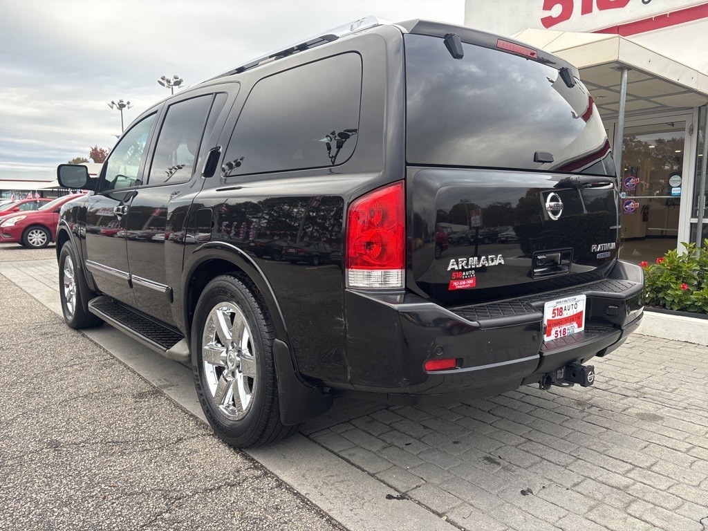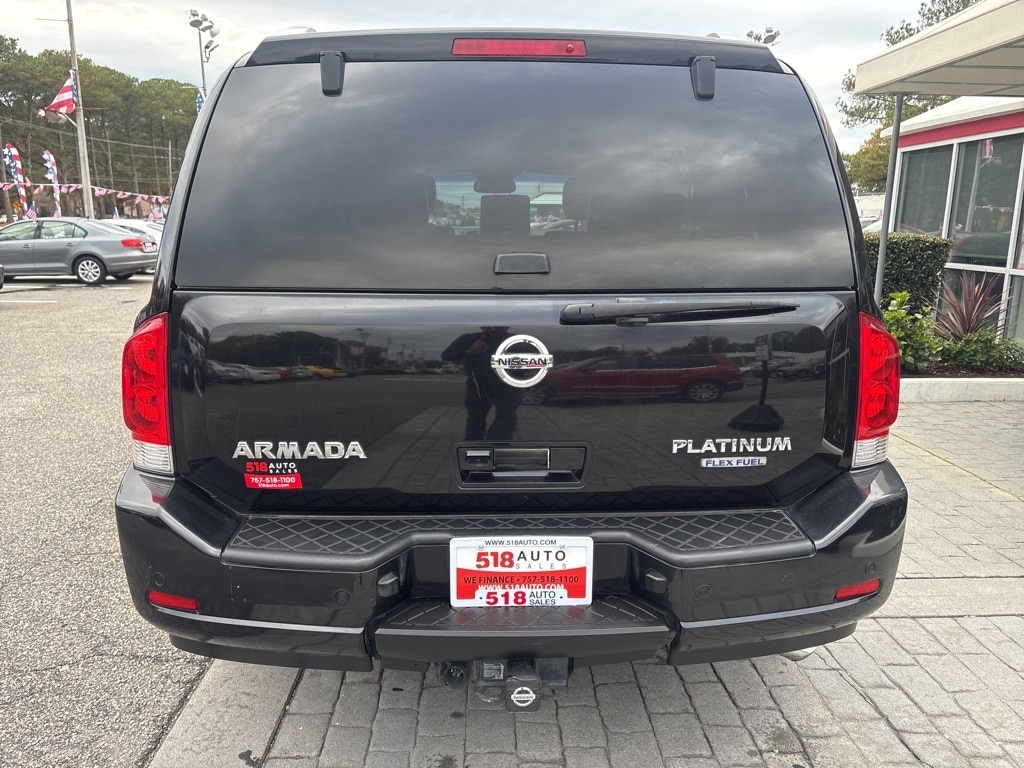 *NAVIGATION*, *SUNROOF*, *LEATHER*, *150 POINT INSPECTION*, *3 MO 3000 MILE SERVICE CONTRACT ON MOST CARS SEE SALES FOR DETAILS*, *518AUTO.COM*, *CALL ALEX NOW 757-518-1100 FOR BEST DAILY PRICE*, *FRESH DETAIL*, *FRESH OIL CHANGE*, *MUST BRING IN AD TO GET SPECIAL INTERNET PRICE*, *NEW STATE INSPECTION*, *https://www.facebook.com/518Auto/#*, *PRINT OUT TO GET THIS PRICE*, *DEALER TRADE-IN*, *CLEAN CARFAX*, *20 SERVICE RECORDS*, *SERVICE RECORDS AVAILABLE*, Armada Platinum, 4D Sport Utility, Endurance 5.6L V8 SMPI DOHC 32V FFV, 5-Speed Automatic with Overdrive, RWD, Galaxy Black, Charcoal w/Leather-Appointed Seat Trim.